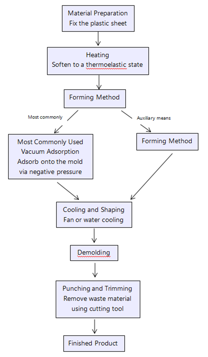 Principio fondamentale: riscaldare e ammorbidire il foglio di plastica, quindi utilizzare il vuoto per adsorbirlo sulla superficie dello stampo e prenderà forma dopo il raffreddamento.